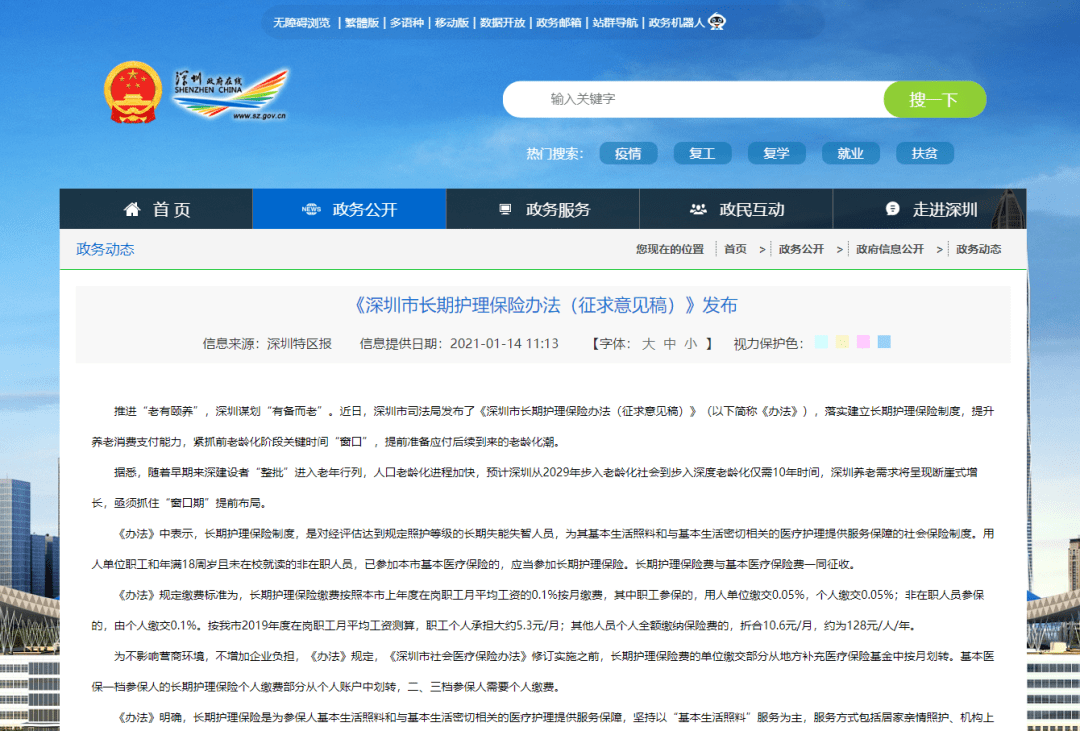 政策依據:《深圳市長期護理保險辦法(征求意見稿)》