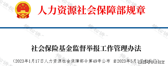 人社部第49號令公布了《社會保險基金監督舉報工作管理辦法》,生效日期是2023年5月1日。