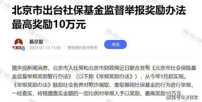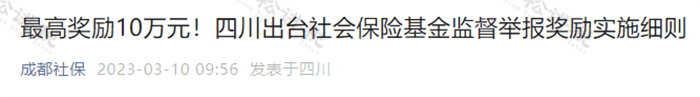 目前,很多地區已經印發了“社會保險基金監督舉報獎勵辦法”,最高獎勵10萬元!