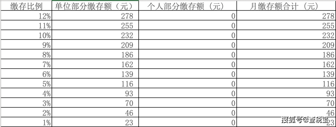 按也就是說,照繳存基數下限2320元對應不同繳存比例的月繳存額下限。