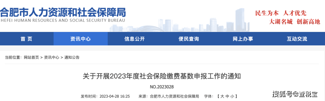 2023年4月28日,合肥市人社部發布了《關于開展2023年度社會保險繳費基數申報工作的通知》,明確2023年5月10日至6月20日開展2023年度社會保險繳費基數申報工作。