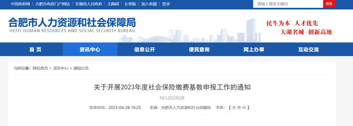 2023年4月28日,合肥市人社部發布了《關于開展2023年度社會保險繳費基數申報工作的通知》,明確2023年5月10日至6月20日開展2023年度社會保險繳費基數申報工作。