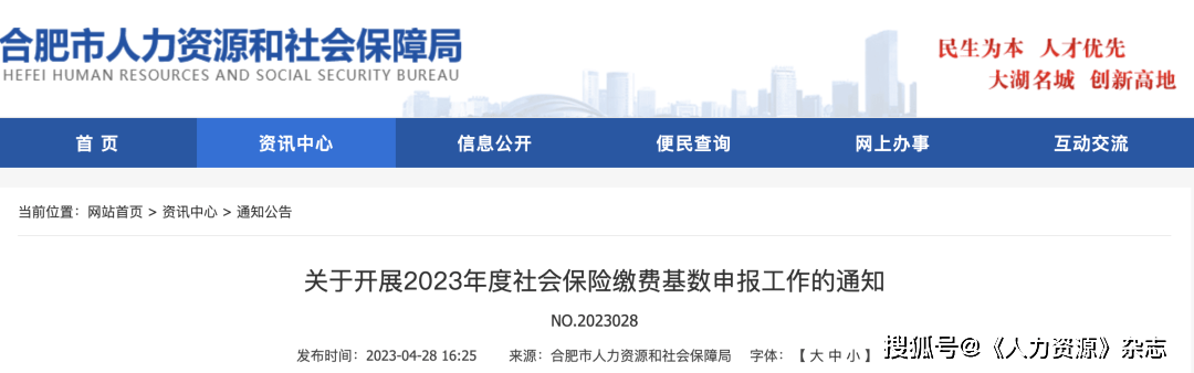 2023年4月28日,合肥市人社部發布了《關于開展2023年度社會保險繳費基數申報工作的通知》,明確2023年5月10日至6月20日開展2023年度社會保險繳費基數申報工作。