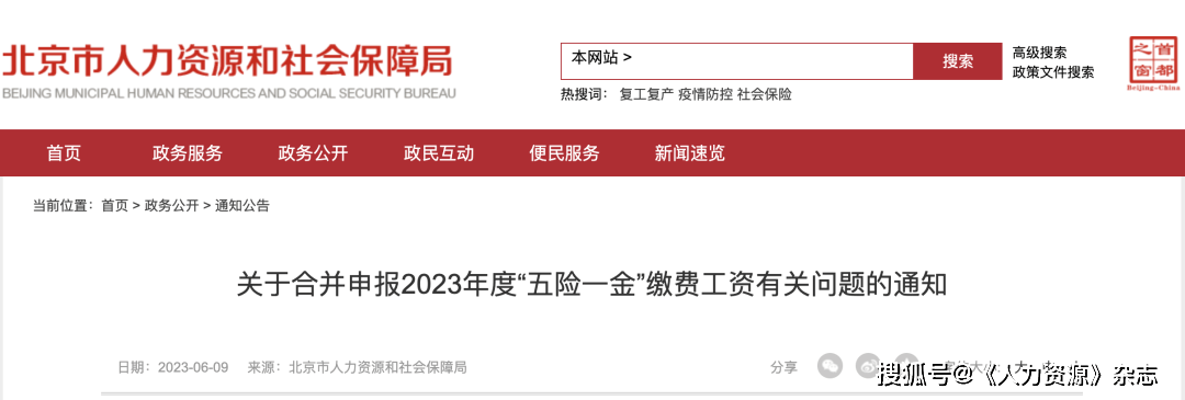 2023年6月9日,北京人社局發布了《關于合并申報2023年度“五險一金”繳費工資有關問題的通知》,明確自6月10日起,北京“五險一金”繳費工資可合并申報。