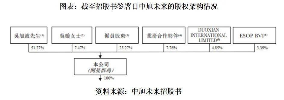 招股書顯示,中旭未來成立于2015年,實際控制人為吳旭波,吳旭波及其妻子吳璇合計持股58.74%。